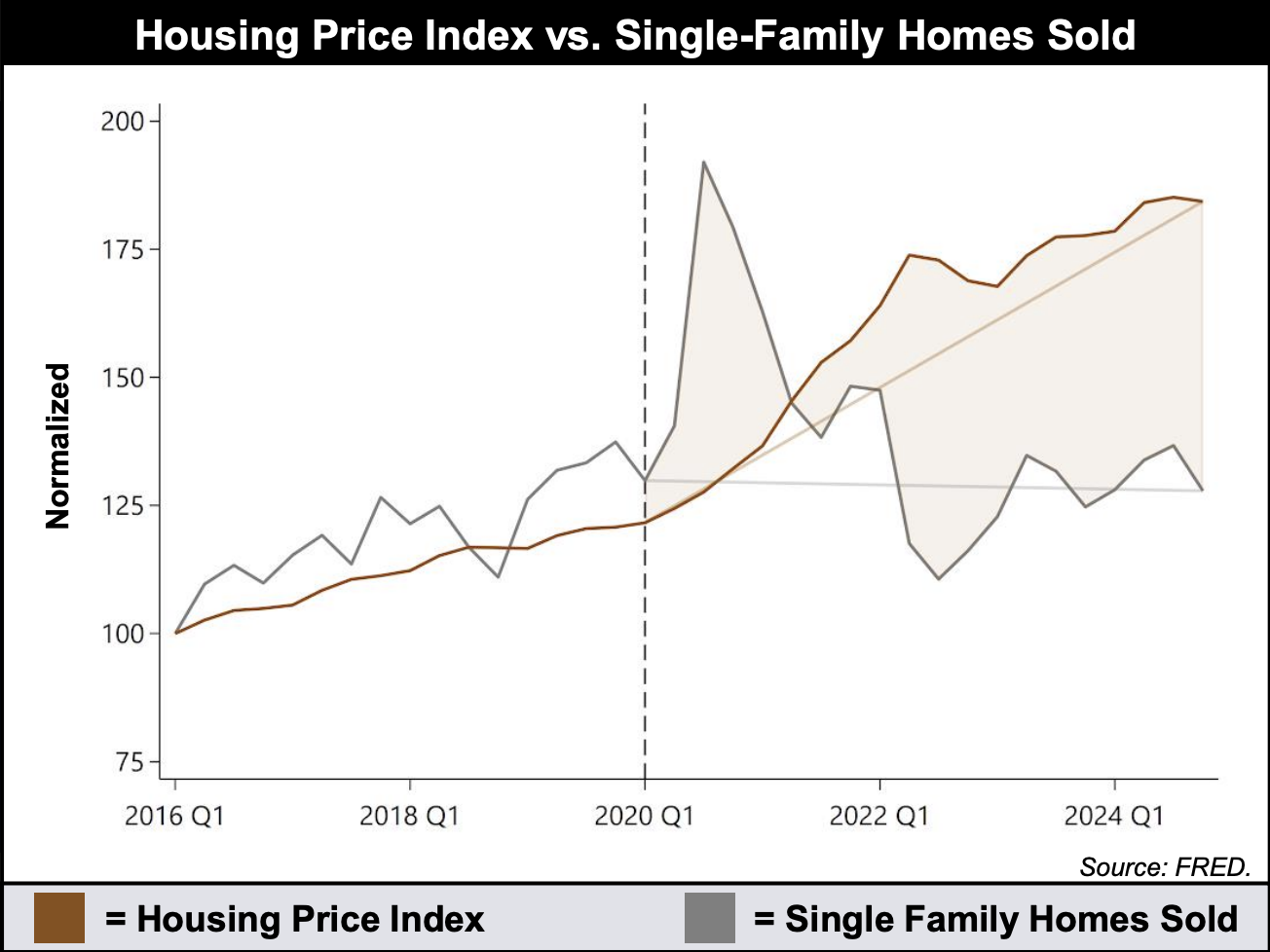 Housing prices have surged since 2020, creating a “locked-in” effect where homeowners simultaneously possess increasing equity value while facing mobility constraints for new home purchases, incentivizing investments in current dwellings over relocation